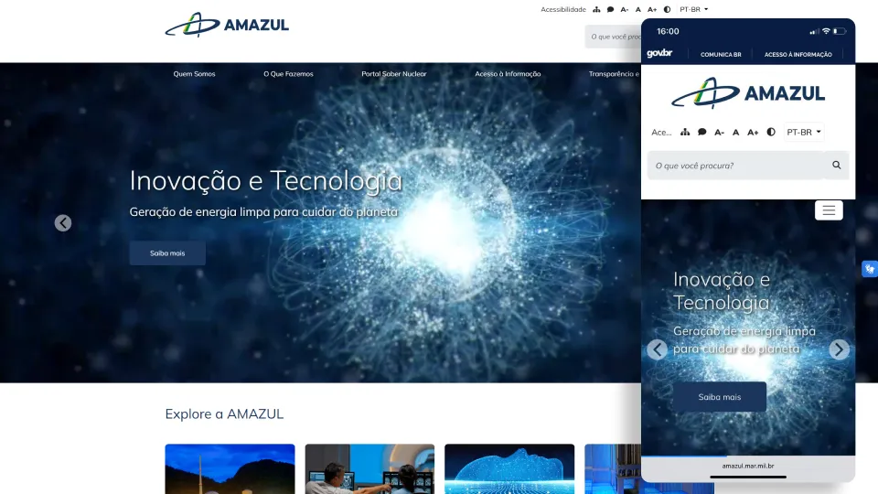Portal responsivo projetado e desenvolvido para a AMAZUL, empresa vinculada ao Ministério da Defesa.