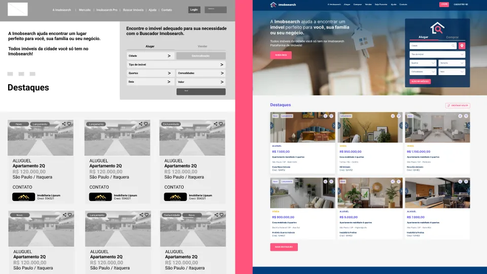 Nosso desafio foi projetar a plataforma Imobsearch, criando uma experiência fluida e eficiente para a busca de imóveis.