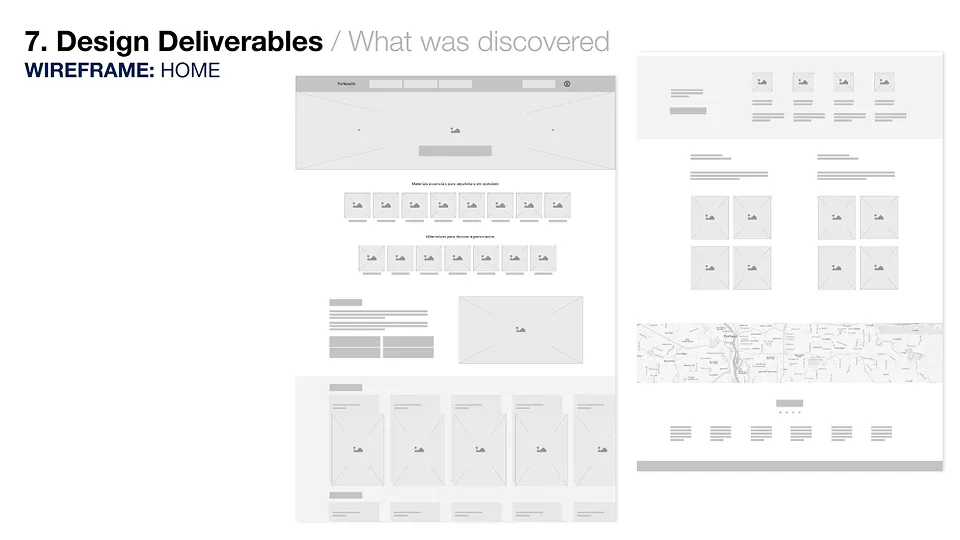 Utilizamos wireframes no Adobe XD para solucionar desafios de arquitetura da informação e organizar conteúdos e produtos de forma intuitiva. Em seguida, desenvolvemos protótipos visuais de alta fidelidade para a Homepage e Página de Lista de Produtos.