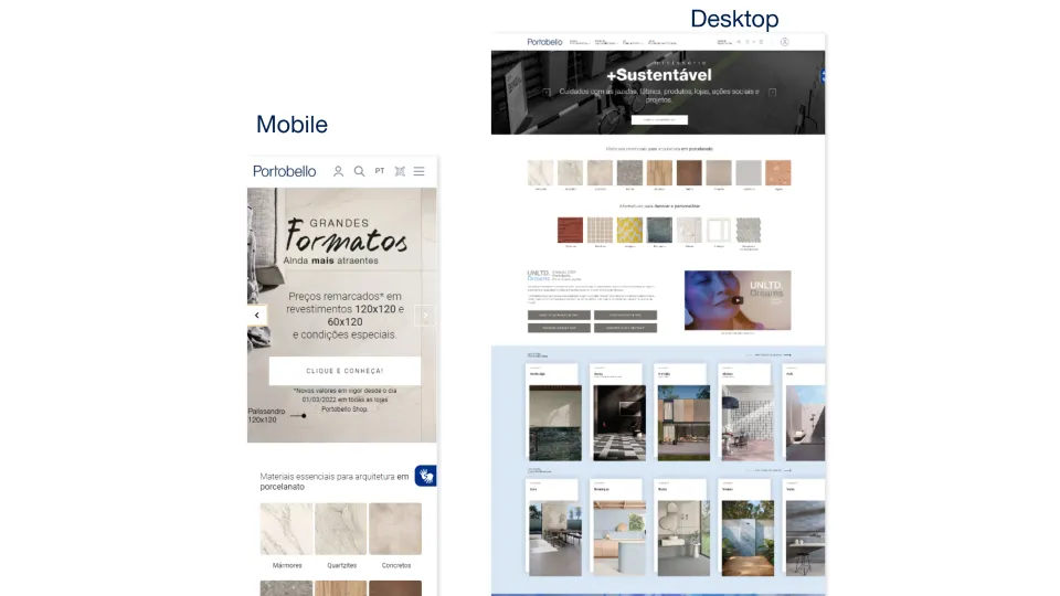 Portal responsivo projetado para a Portobello, indústria líder no segmento de pisos e revestimentos.